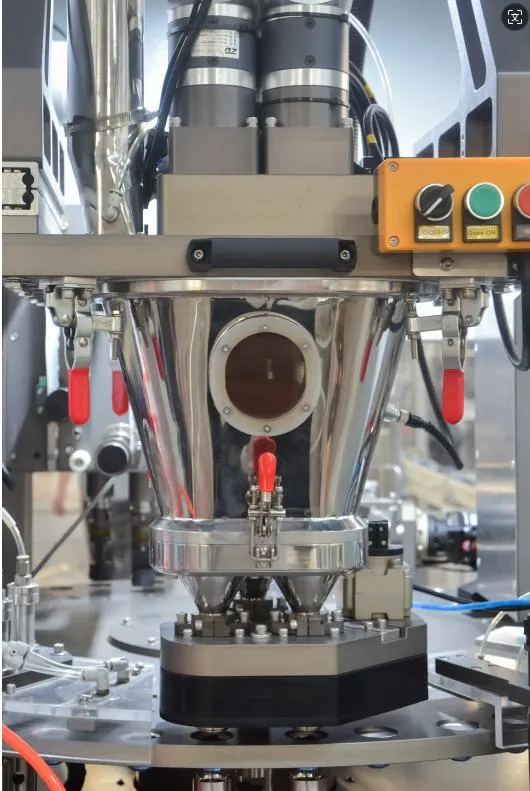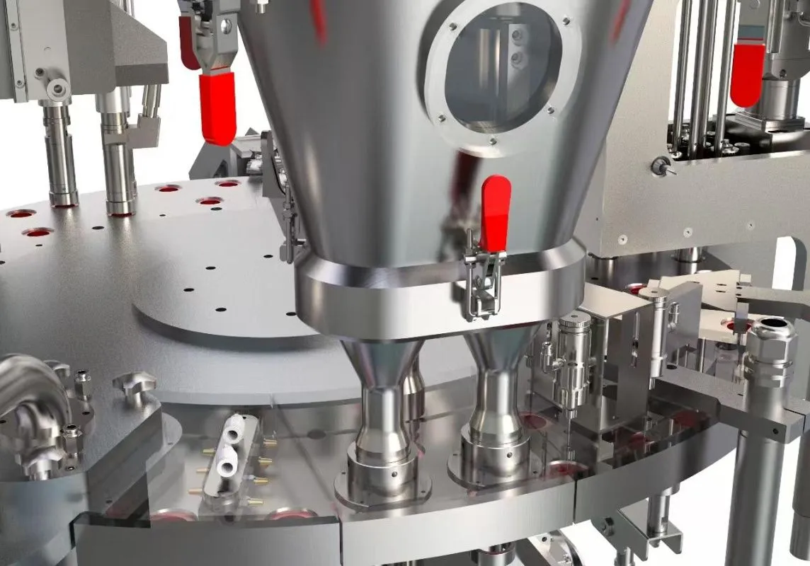 Конструкция кулачкового механизма позволяет перемещать всю систему наполнения вниз к верхнему отверстию капсулы, чтобы избежать высыпания порошка наружу.