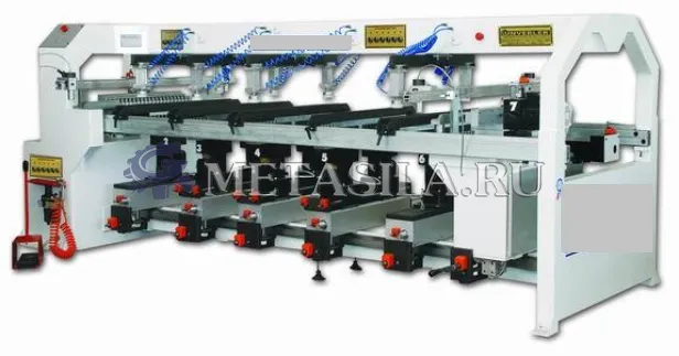 Данная линия имеет возможность сверлить горизонтально и вертикально одновременно. Деталь автоматически фиксируется пневматически.