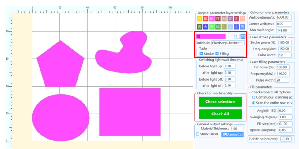 Данная система управления разработана самостоятельно и отличается от традиционных систем для маркировочных станков. Обладает стабильной производительностью и простотой в эксплуатации. Позволяет свободно проектировать обрабатываемую графику. Поддерживается формат DXF, обработка переменного текста с гибким выбором шрифтов, возможность изменения текста в реальном времени во время обработки, а также прямое динамическое чтение и запись текстовых файлов и файлов Excel. Открытая функция поддержки нескольких языков позволяет легко работать с различными языками.